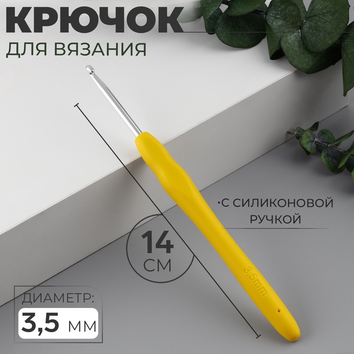 Крючок для вязания, с силиконовой ручкой, d=3.5 мм, 14 см, МИКС