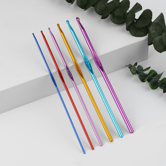 Набор крючков для вязания, d=2-4.5 мм, 14.5 см, 6 шт., разноцветный