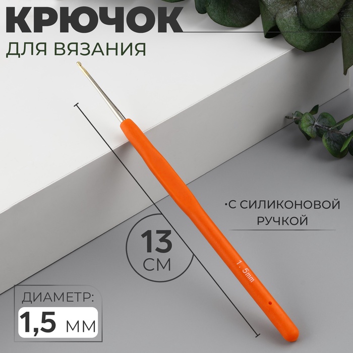 Крючок для вязания, с силиконовой ручкой, d=1.5 мм, 13 см, оранжевый
