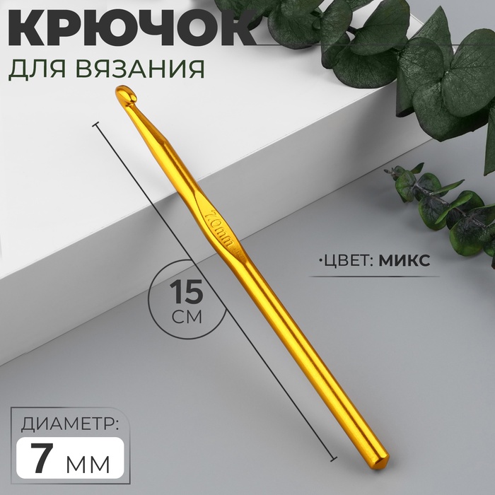 Крючок для вязания, d=7 мм, 15 см, МИКС