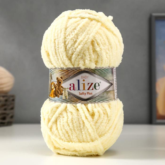 Плюшевая пряжа для вязания спицами, крючком ALIZE, Softy Plus, 100% микрополиэстер, 120 м/100 г, (62 св. молочный)