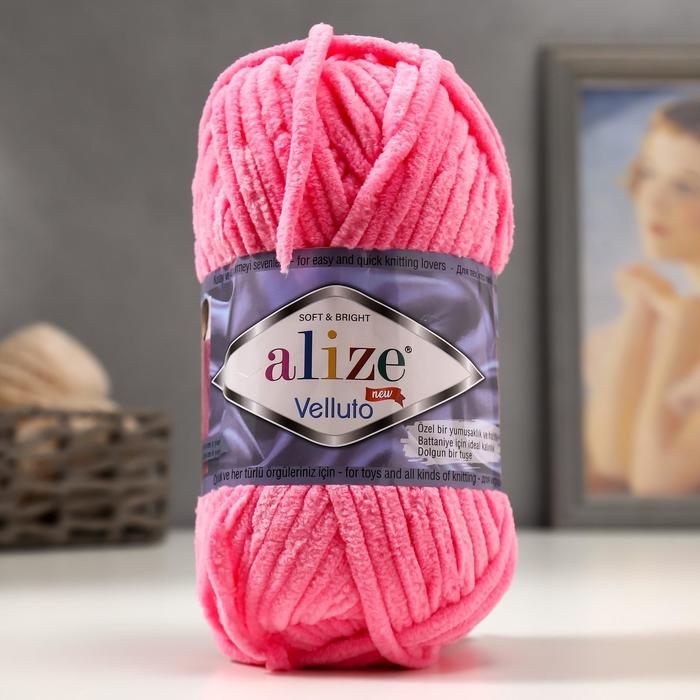 Плюшевая пряжа для вязания спицами, крючком ALIZE, Velluto, 100% микрополиэстер, 68 м/100 г, (121 розовый леденец)