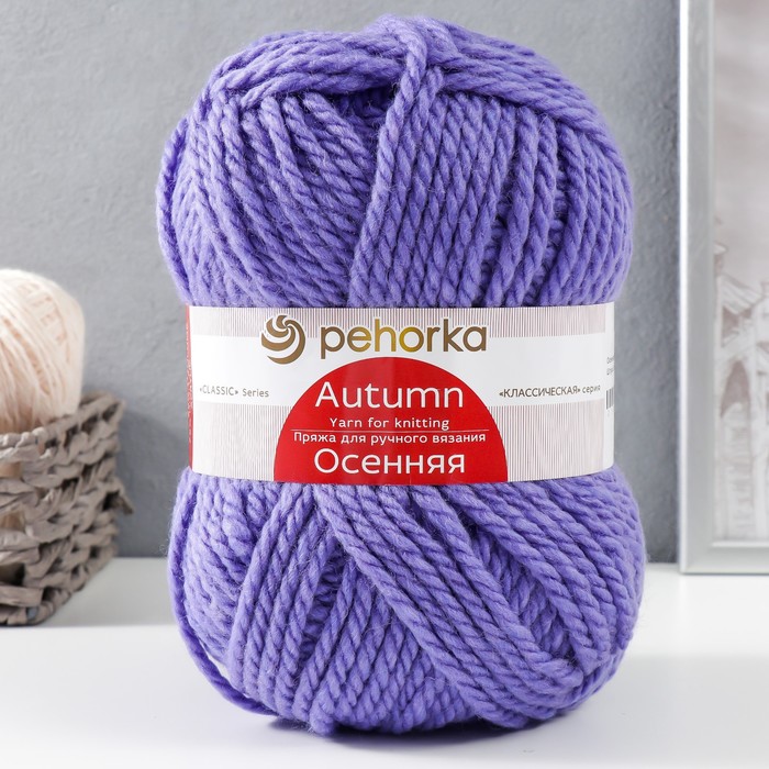 Пряжа для вязания спицами, крючком «Пехорский текстиль. Осенняя»,25% шерсть, 75% ПАН, 150 м/200г, (496 яр. сирень)