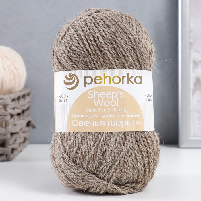 Пряжа для вязания спицами, крючком «Пехорский текстиль. Овечья шерсть», 100% шерсть, 200 м/100 г, (530 св. натуральный)