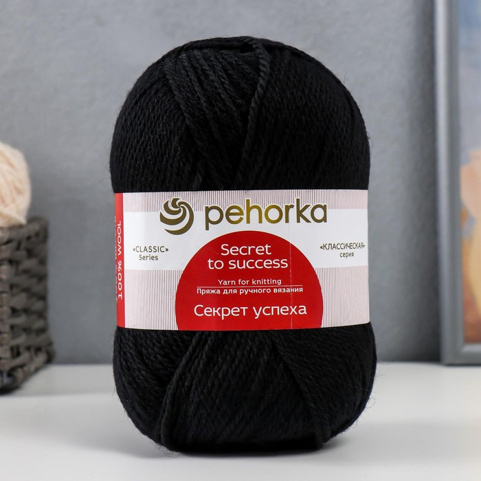 Пряжа для вязания спицами, крючком «Пехорский текстиль. Секрет успеха», 100% шерсть, 250 м/100 г, (02 чёрный)