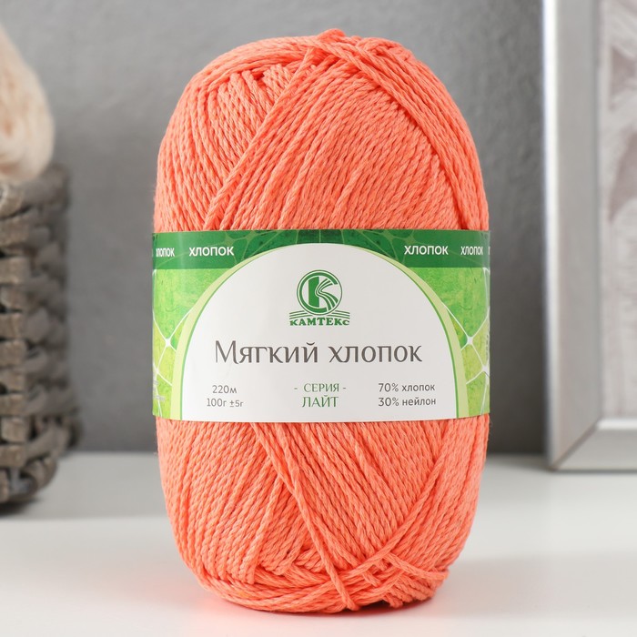 Пряжа для вязания спицами, крючком «Камтекс. Мягкий хлопок», 70% хлопок, 30% нейлон, 220 м/100 г, (036 абрикос)