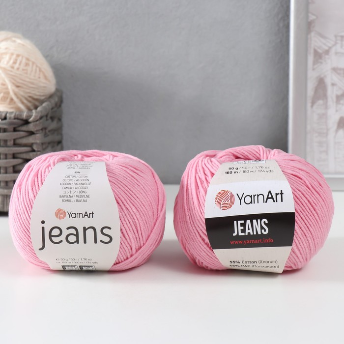 Пряжа для вязания спицами, крючком YarnArt, Jeans, 55% хлопок, 45% акрил, 160 м/50 г, (36 св. розовый)