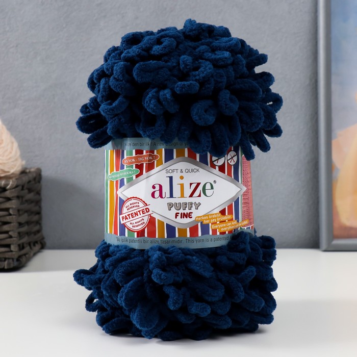 Плюшевая пряжа для вязания руками ALIZE, Puffy fine, 100% микрополиэстер, 14.5 м/100 г, (93)
