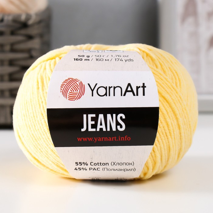 Пряжа для вязания спицами, крючком YarnArt, Jeans, 55% хлопок, 45% акрил, 160 м/50 г, (88 жёлтый)