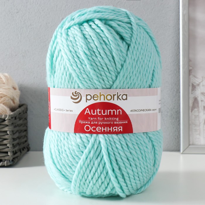 Пряжа для вязания спицами, крючком «Пехорский текстиль. Осенняя», 25% шерсть, 75% акрил высокообъемный, 150 м/200г, (222 голубая бирюза)