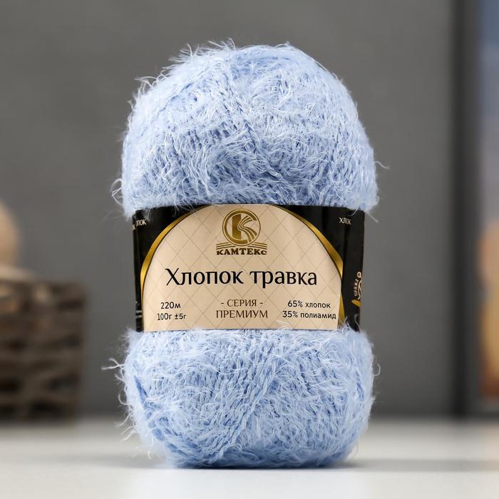 Пряжа для вязания спицами, крючком «Камтекс. Хлопок травка», травка, 65% хлопок, 35% полиамид, 220 м/100 г, (015 голубой)