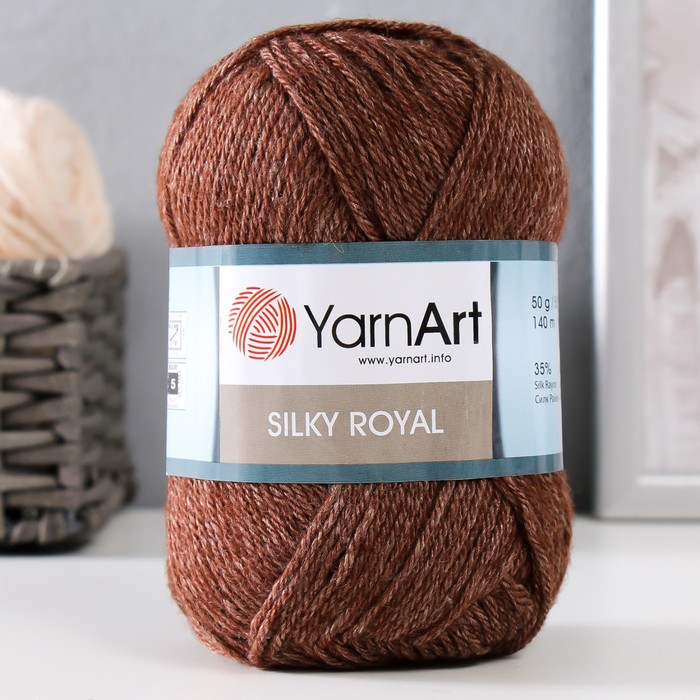 Пряжа для вязания спицами, крючком YarnArt, Silky Royal, 65% мериносовая шерсть, 35% искусственный шёлк, 140 м/50 г, (436 коричневый)