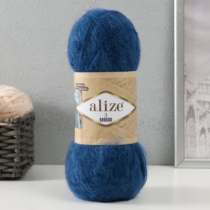 Пряжа для вязания спицами, крючком ALIZE, 3 Season, 51% акрил, 25% мохер, 24% шерсть, 500 м/100 г, (409 василёк)