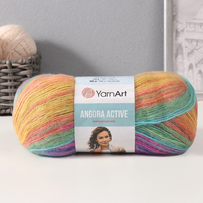 Пряжа для вязания спицами, крючком YarnArt, Angora Active, 20% шерсть, 80% акрил, 500 м/100 г, (850 радуга)