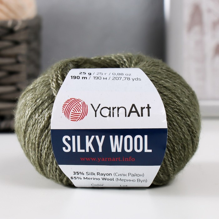 Пряжа для вязания спицами, крючком YarnArt, Silky Wool, 35% силк район, 65% мерино вул, 190 м/25г, (346 полынь)
