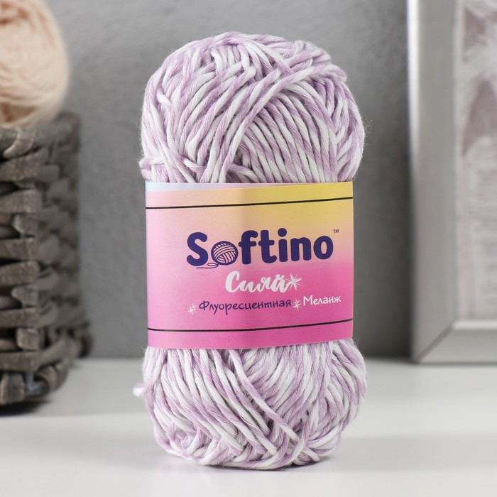 Пряжа для вязания спицами, крючком светящаяся 100% лавсан Softino «Сияй», меланж 50 г, 50 м, бело-сиреневая