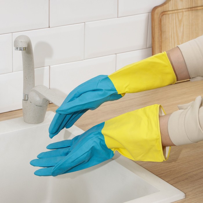 Перчатки хозяйственные неопреновые, особопрочные, ХБ напыление, двухцветные, размер L