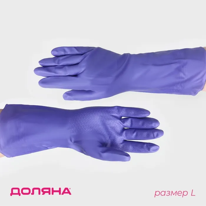 Перчатки хозяйственные Доляна, суперпрочные, размер L, ПВХ, фиолетовые