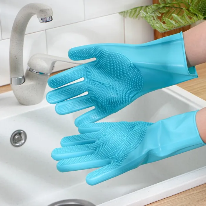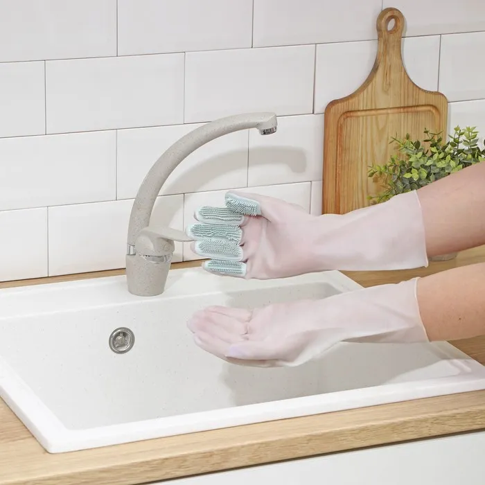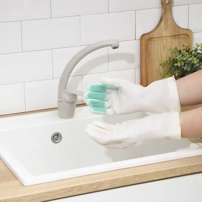 Перчатки хозяйственные Доляна, 28×14 см, силиконовые, бирюзовые