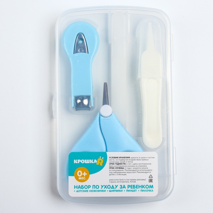 Детский маникюрный набор Крошка Я, 2 предмета: ножницы, щипчики, от 0 мес., голубой