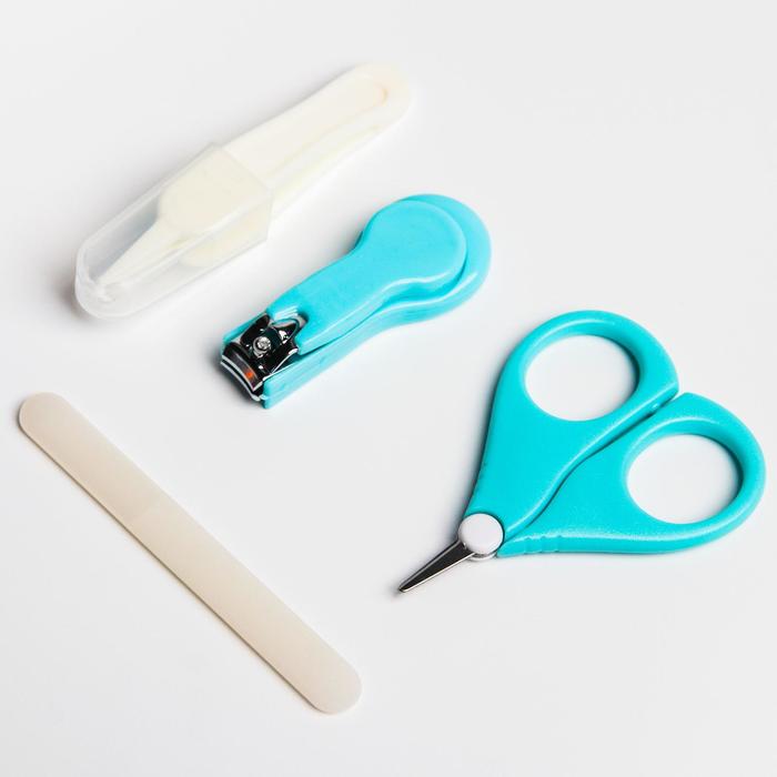 Детский маникюрный набор, 3 предмета: ножницы, пилка, книпсер, от 0 мес., голубой