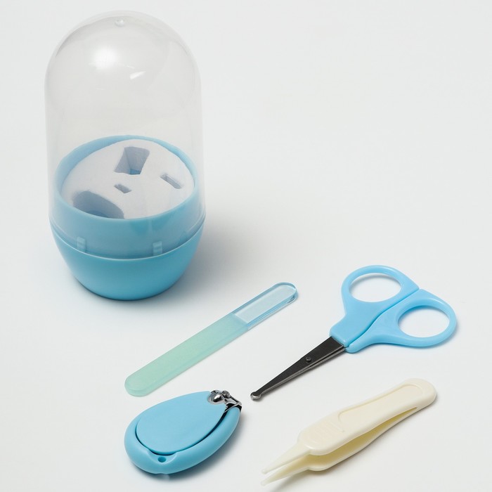 Набор маникюрный детский: ножницы, щипчики, пилочка, пинцет, голубой