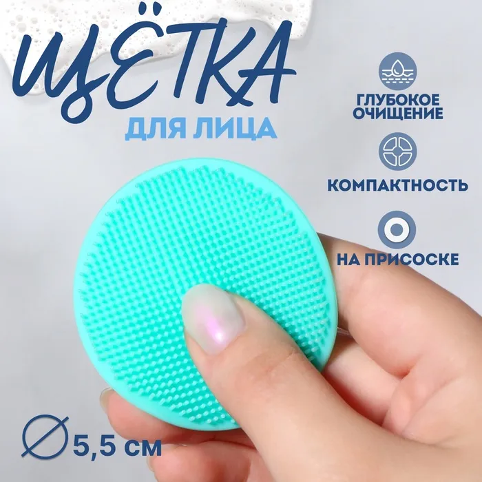 Щётка для умывания «Круг», силиконовая, на присоске, d=5.5 см, бирюзовая