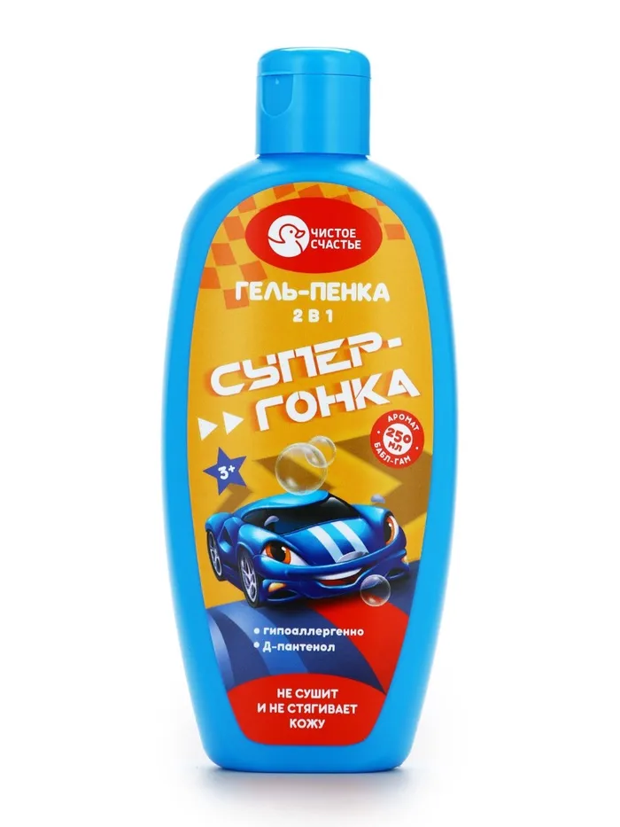 Гель-пена для мальчиков Супер-гонка, аромат бабл-гам, 250 мл, Чистое счастье
