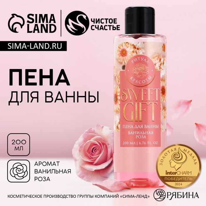 Пена для ванны SWEET GIFT, 200 мл, аромат ванильной розы, Чистое счастье