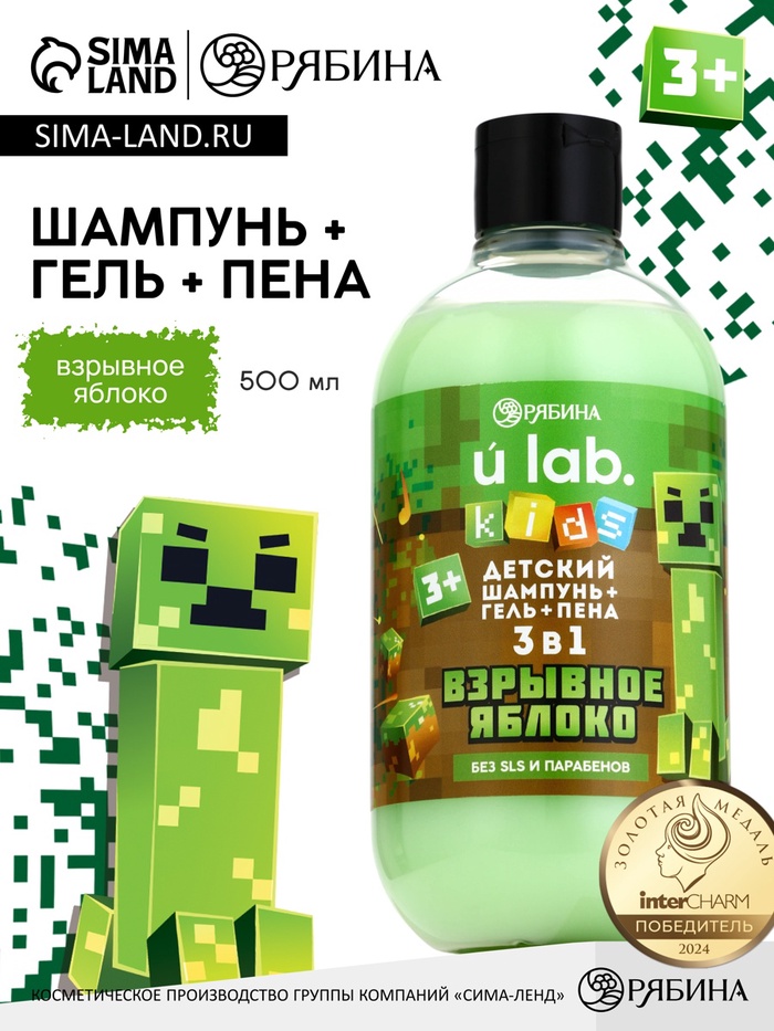 Детский шампунь-гель-пена 3в1, 500 мл, аромат взрывное яблоко,U LAB