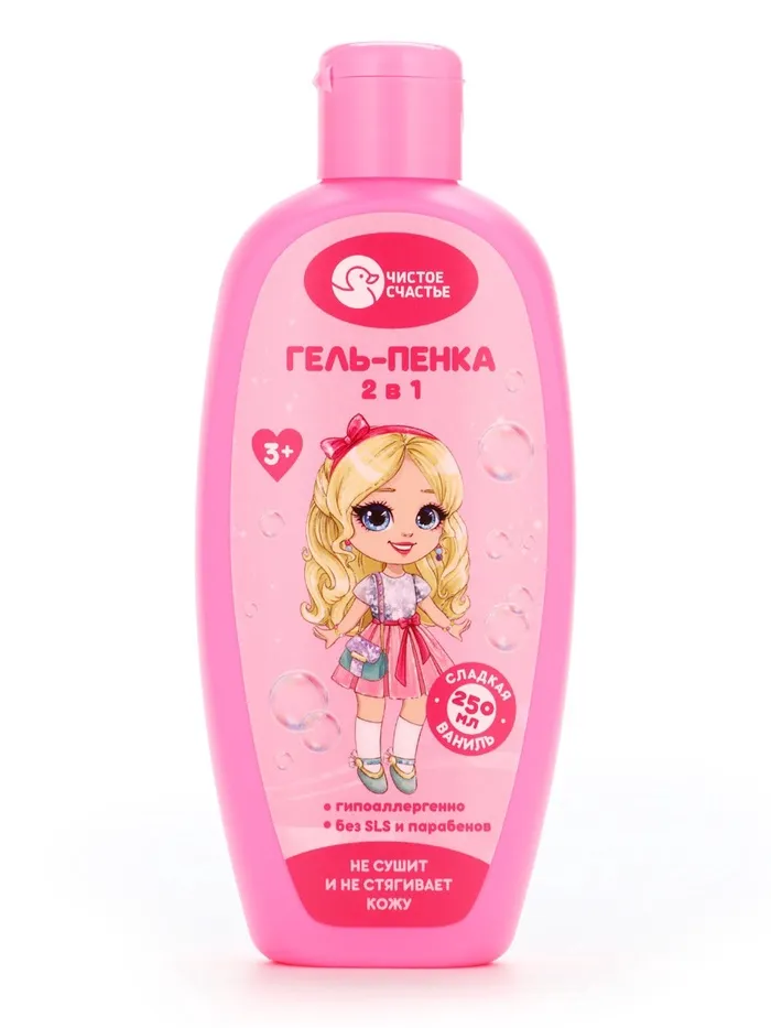 Гель-пена для девочек, аромат сладкой ванили, 250 мл, Чистое счастье