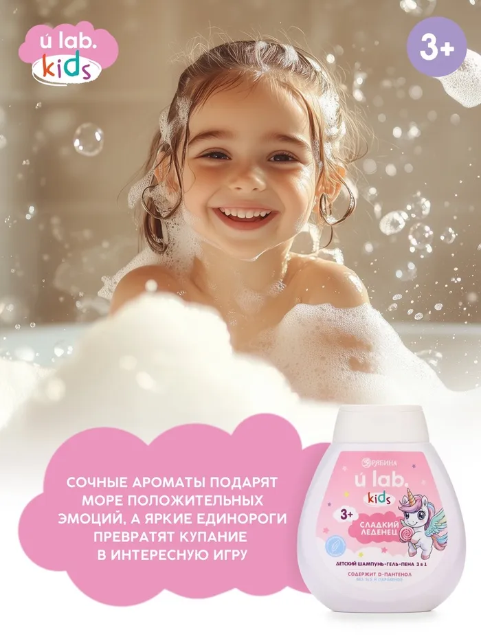 Детский шампунь-гель-пена 3в1 «Единороги», 250 мл, аромат сладкий леденец, 3+