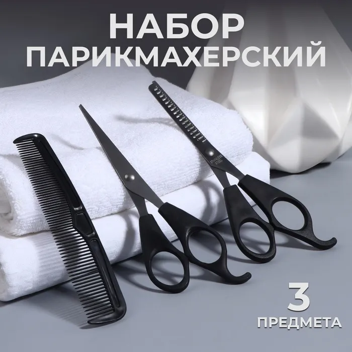 Набор парикмахерский, 3 предмета, цвет чёрный