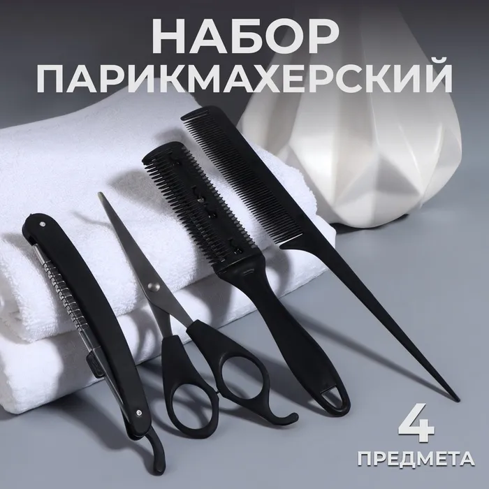 Набор парикмахерский, 4 предмета, цвет чёрный