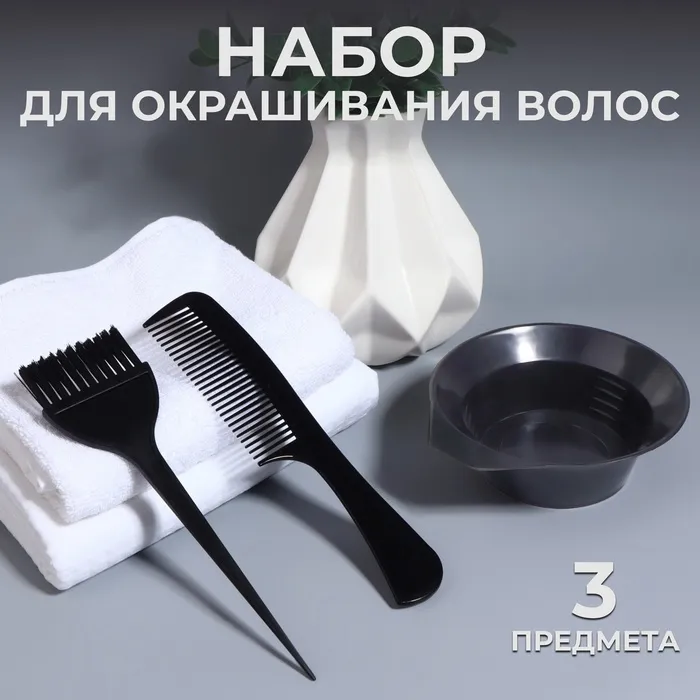 Набор для окрашивания, 3 предмета, цвет чёрный
