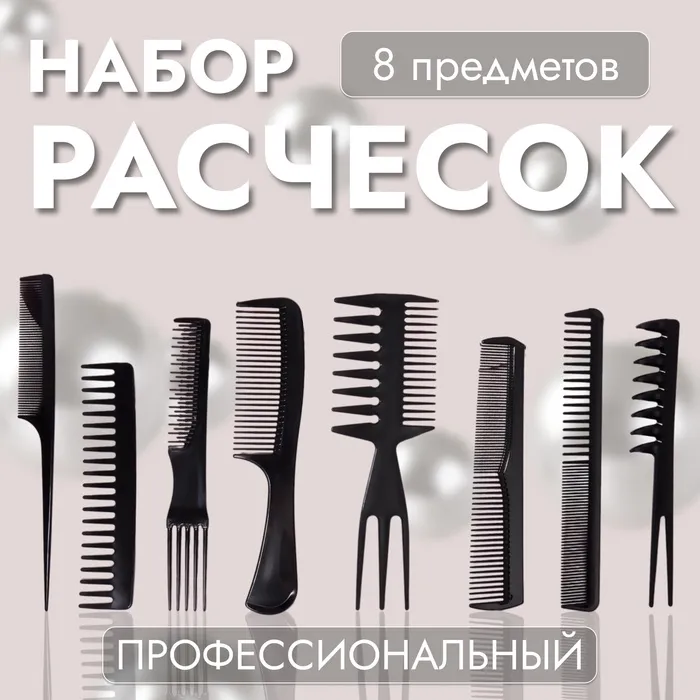 Набор расчёсок, 10 предметов, в чехле, цвет чёрный