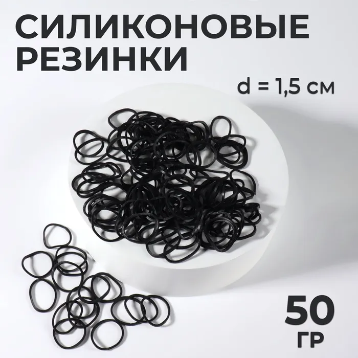 Силиконовые резинки для волос, набор - 800 (± 50) шт., d=1.5 см, 50 г, чёрная