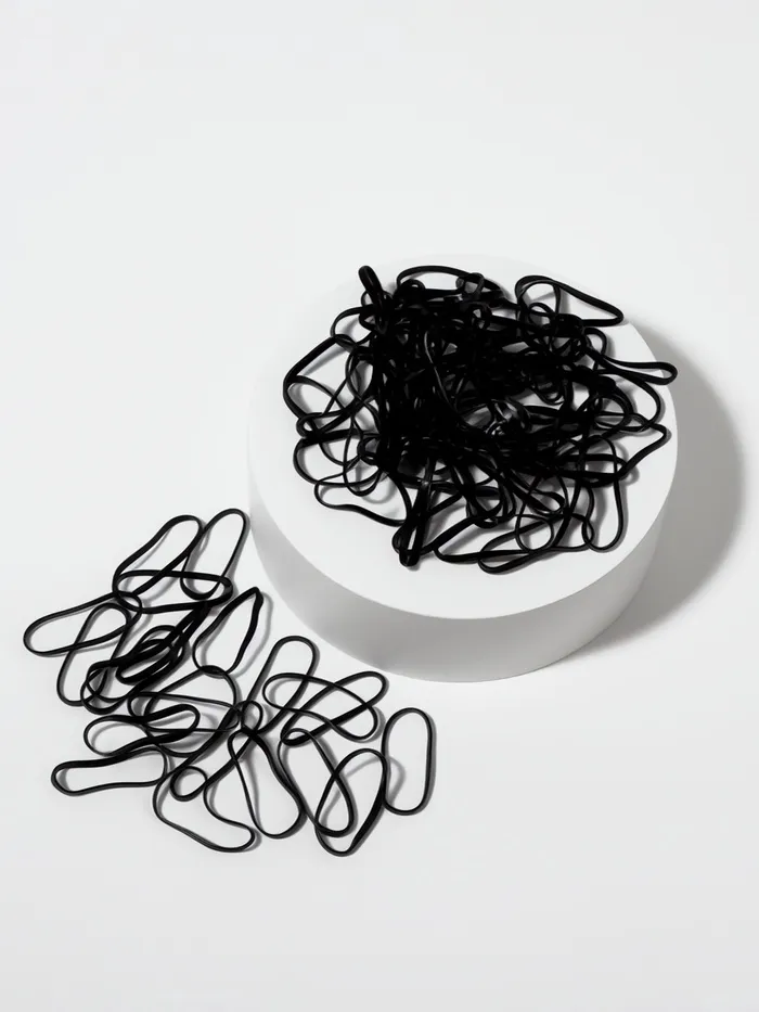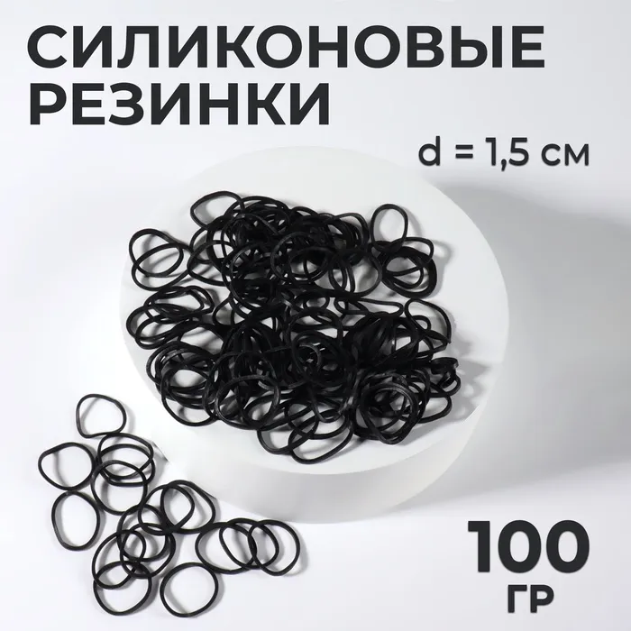 Силиконовые резинки для волос, набор - 1600 (± 100) шт., d=1.5 см, 100 г, чёрная