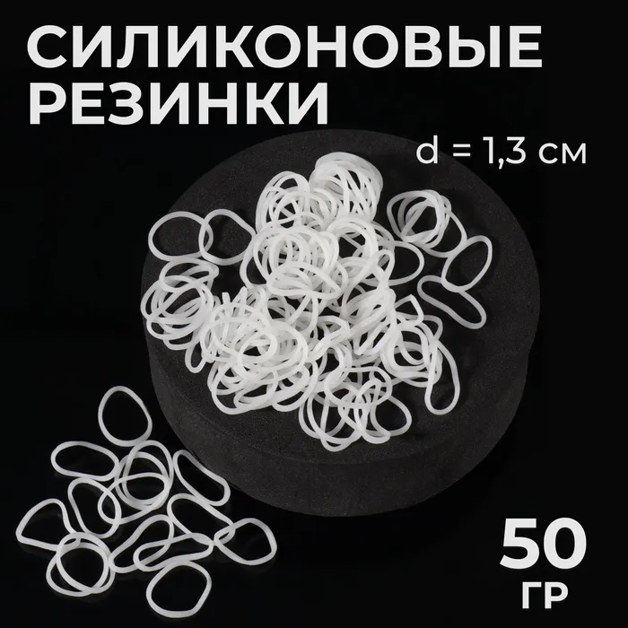 Силиконовые резинки для волос, набор - 800 (± 50) шт., d=1.3 см, 50 г, белая
