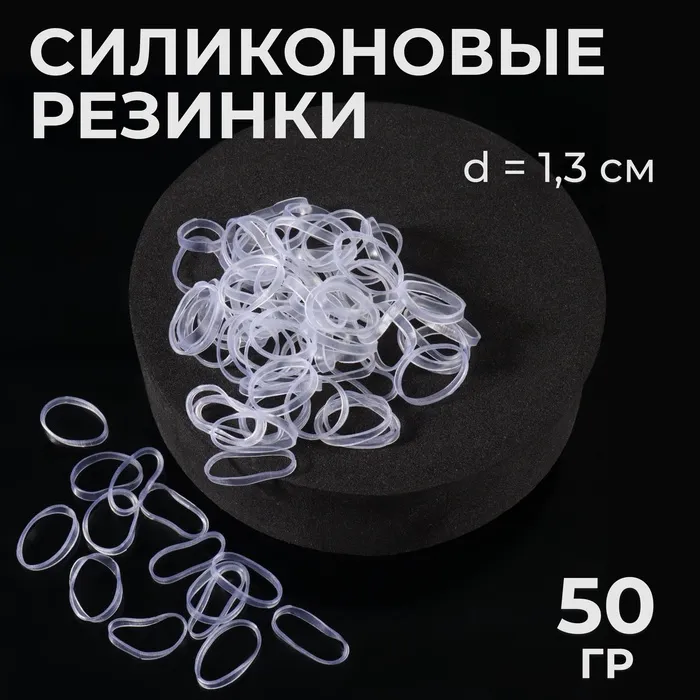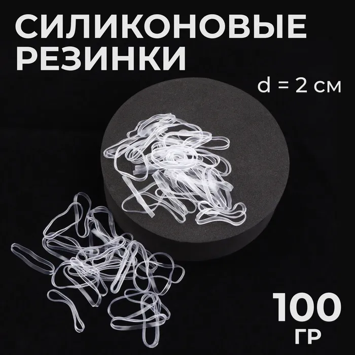 Силиконовые резинки для волос, набор - 1300 (± 60) шт., d=2 см, 100 г, прозрачная
