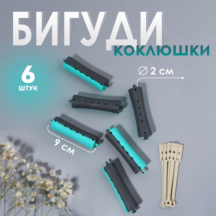 Бигуди «Коклюшки», d = 2 см, 9 см, 6 шт, цвет чёрный/зелёный
