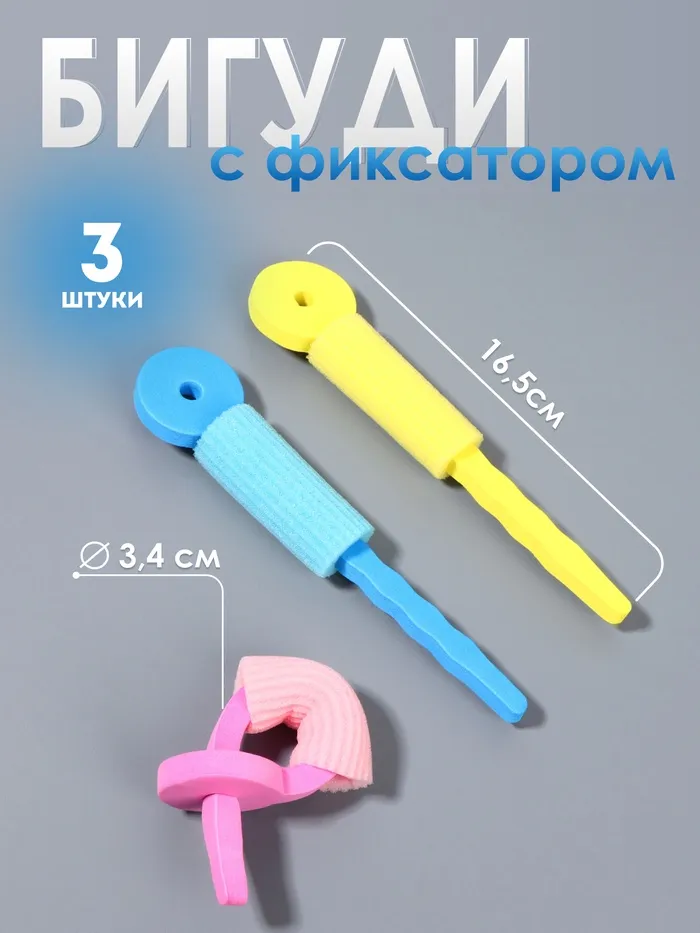 Бигуди с фиксатором, d=3.4 см, 16.5 см, набор - 3 шт., разноцветные