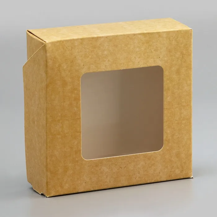 Коробка складная, с окном, крафт, 11.5×11.5×4 см