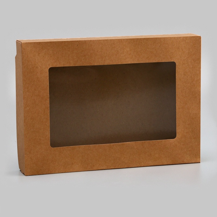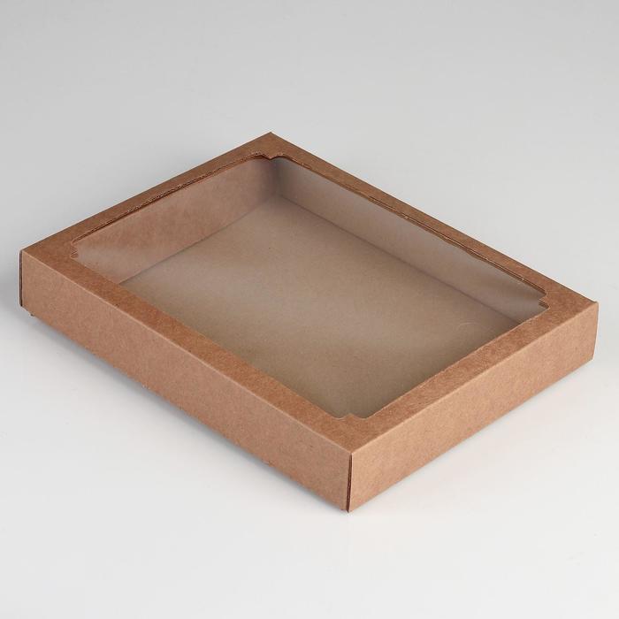 Коробка сборная, крышка-дно, с окном, крафт, 26 х 21 х 4 см, набор 5 шт.