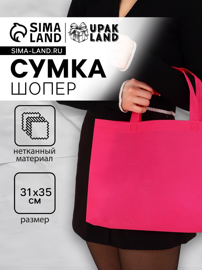 Пакет с петлевой ручкой, сумка - шопер «Эко», 35×31×8 см, фуксия