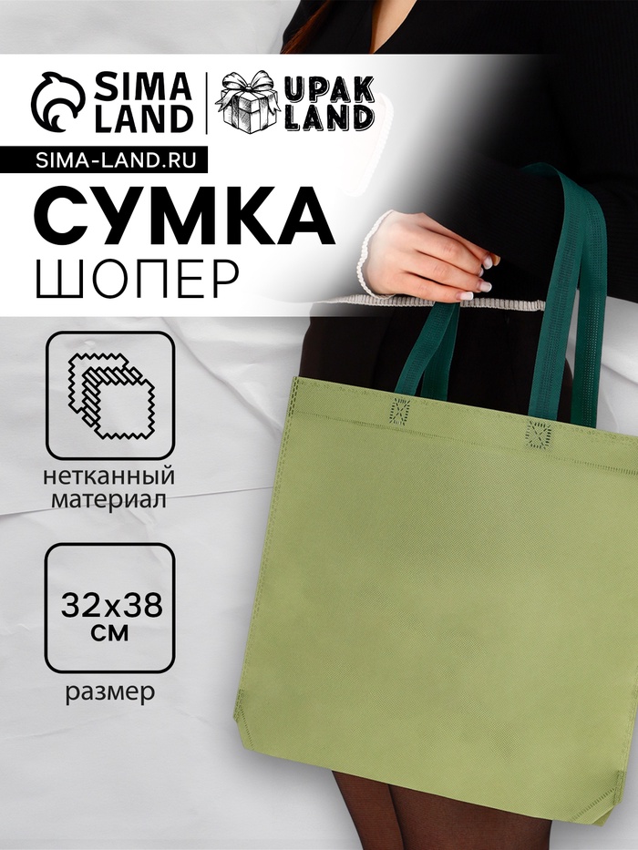 Пакет с петлевой ручкой, сумка - шопер «Эко», 38×32×10 см, хаки