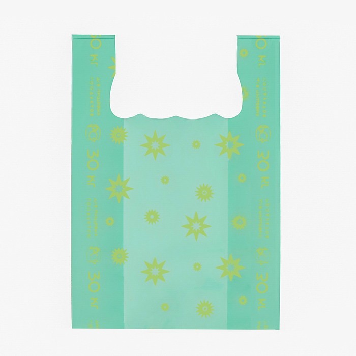 Пакет майка, полиэтиленовый "Звезды", зеленый, 33 х 53 см, 15 мкм
