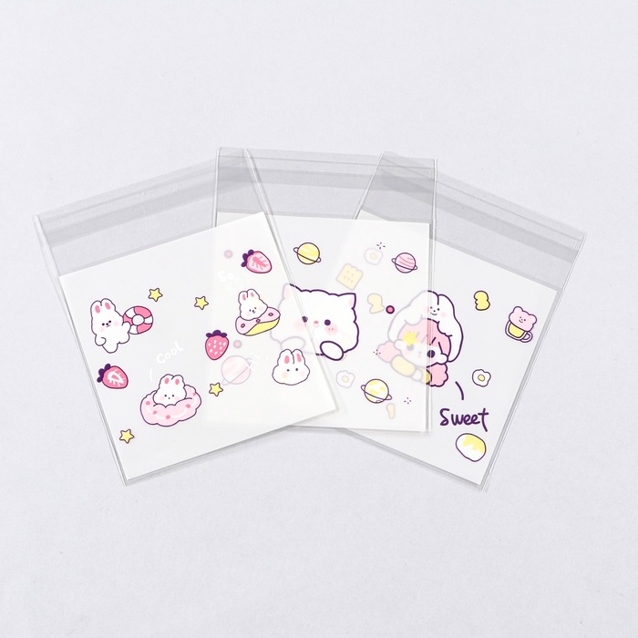 Пакет БОПП с липкой лентой, «Корейский стиль», 10×10+3 см МИКС