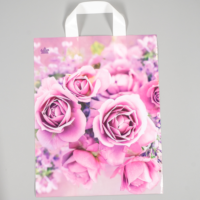 Пакет «Нежные розы», полиэтиленовый с петлевой ручкой, 35×28 см, 55 мкм