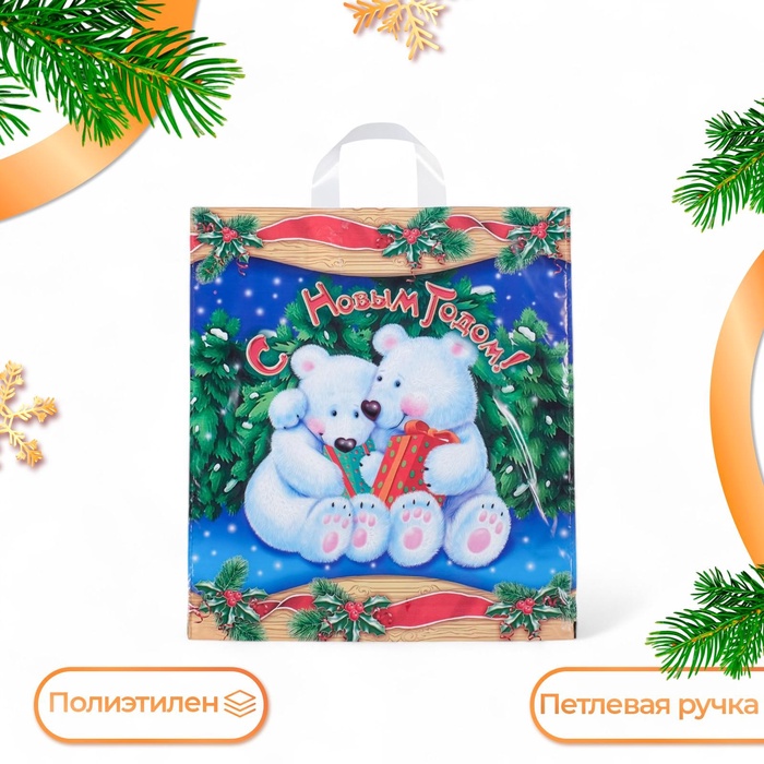Пакет «Белые медведи», полиэтиленовый с петлевой ручкой 38×42 см